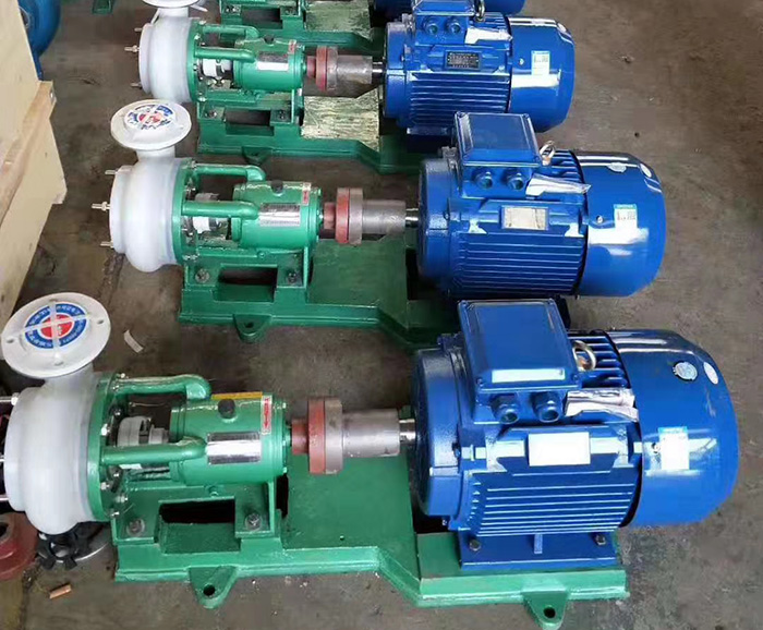 氟塑料合金泵泵體采用金屬外殼內(nèi)襯聚全氟乙丙烯(F46),泵蓋、葉輪和軸套均用金屬嵌件外包氟塑料整體燒結(jié)壓制成型,軸封采用四氟填充材料,進(jìn)出口均采用鑄鋼體加固。